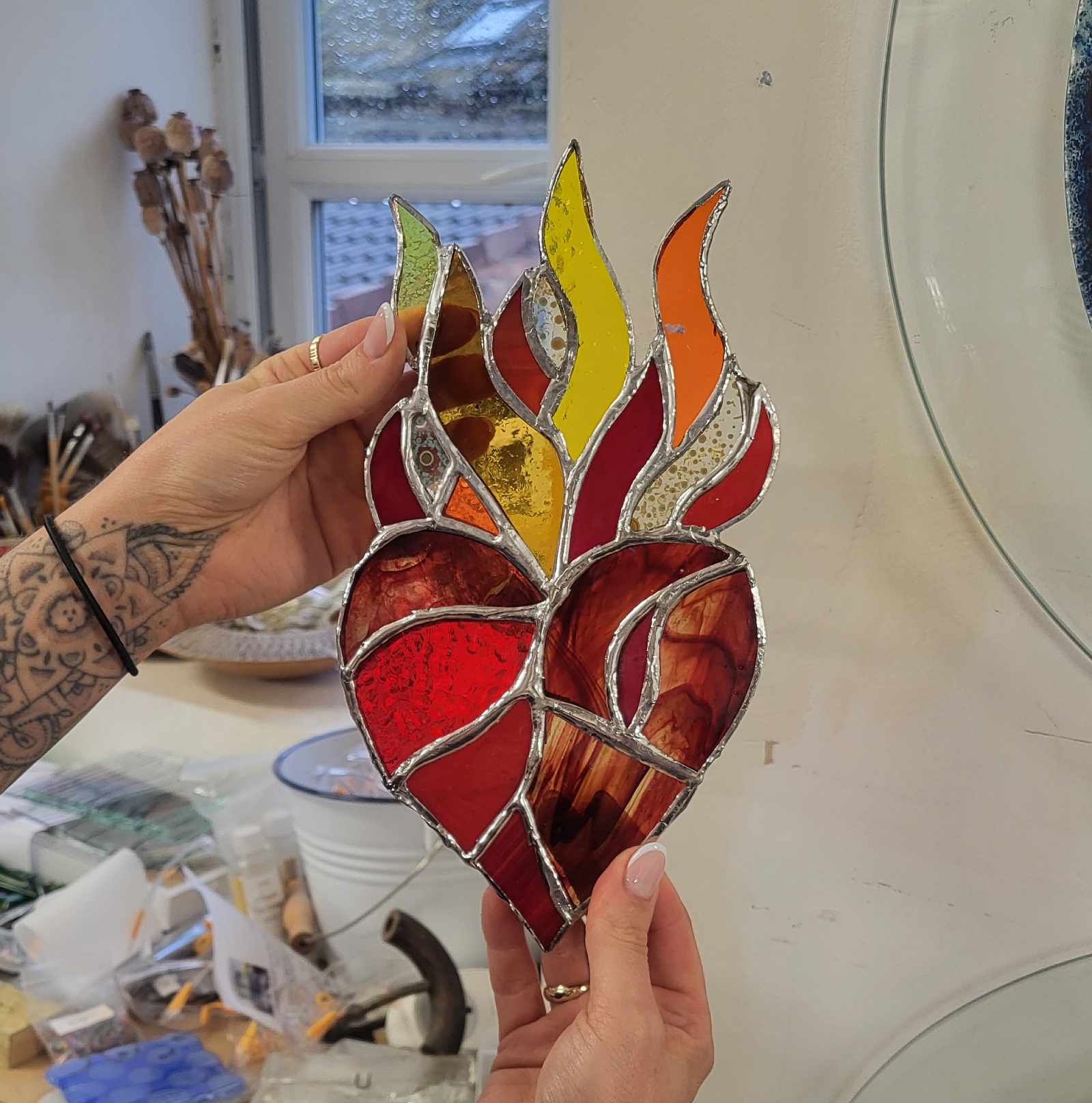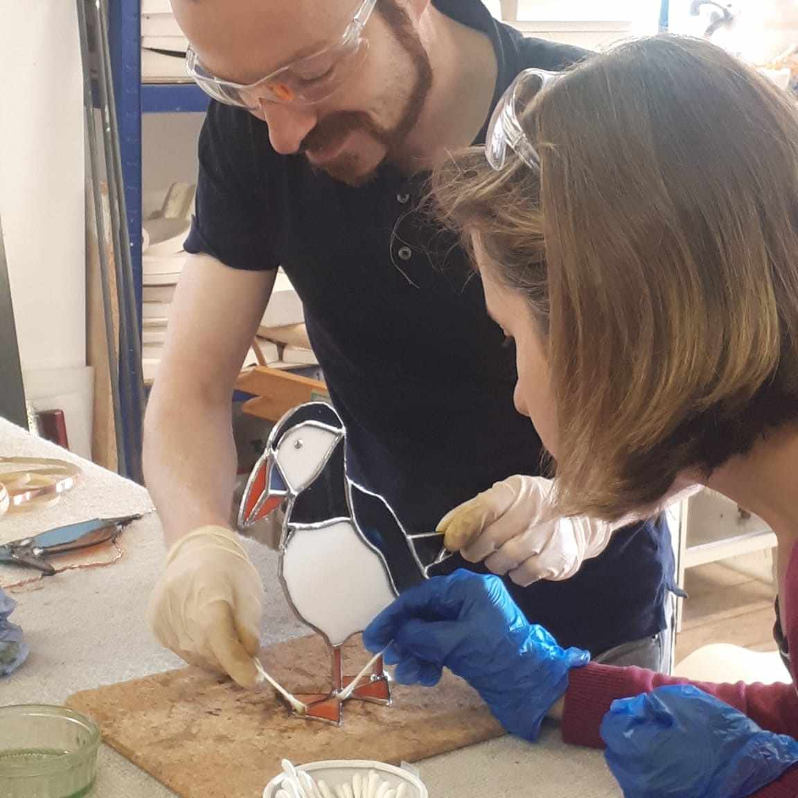 Many students find copper foiling easier to learn than lead work because the tape is more forgiving and the soldering process more straightforward. It’s also perfect if you want to continue at home – the equipment needed is more compact and manageable than full lead work setups.