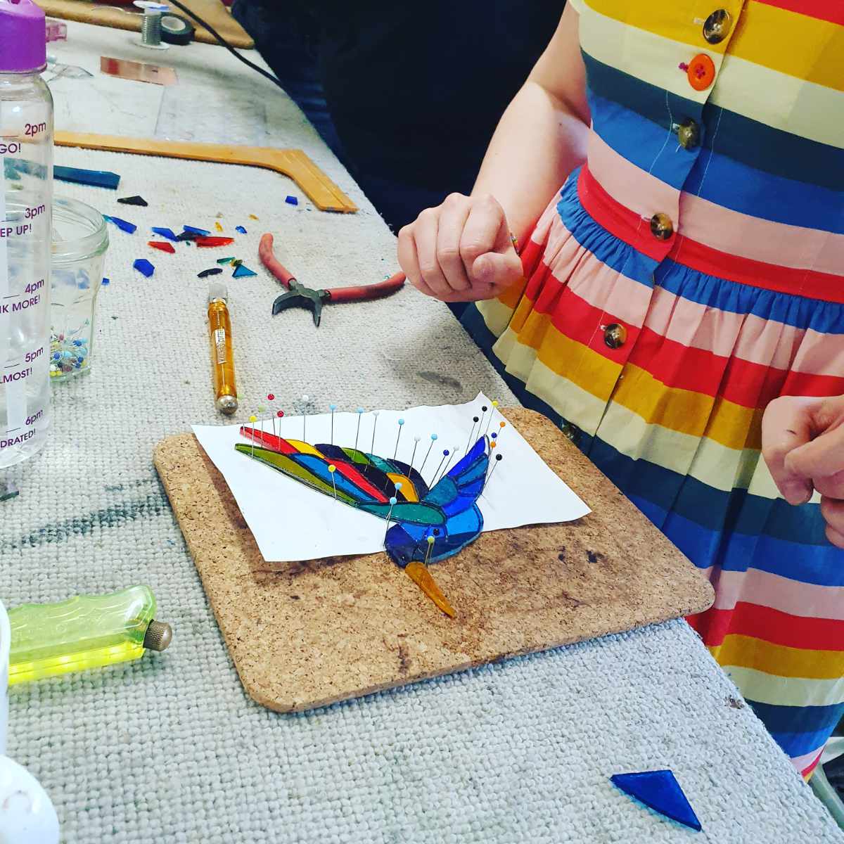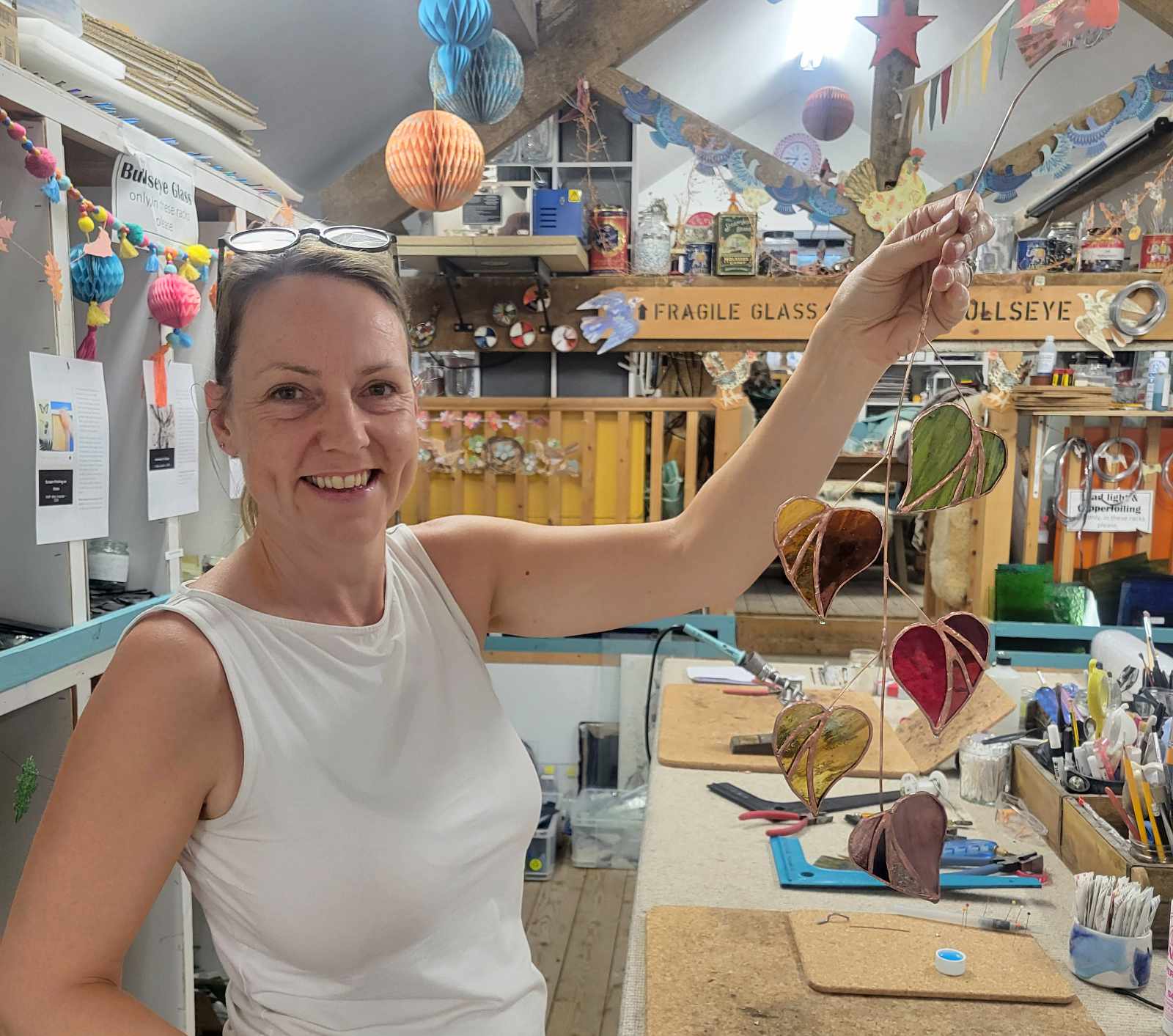 A: Everything you need – all glass, tools, kiln firing, safety equipment, tea and coffee throughout the day, and biscuits. You just need to bring yourself! The only extra would be if you want to make additional pieces beyond what’s included in the course.