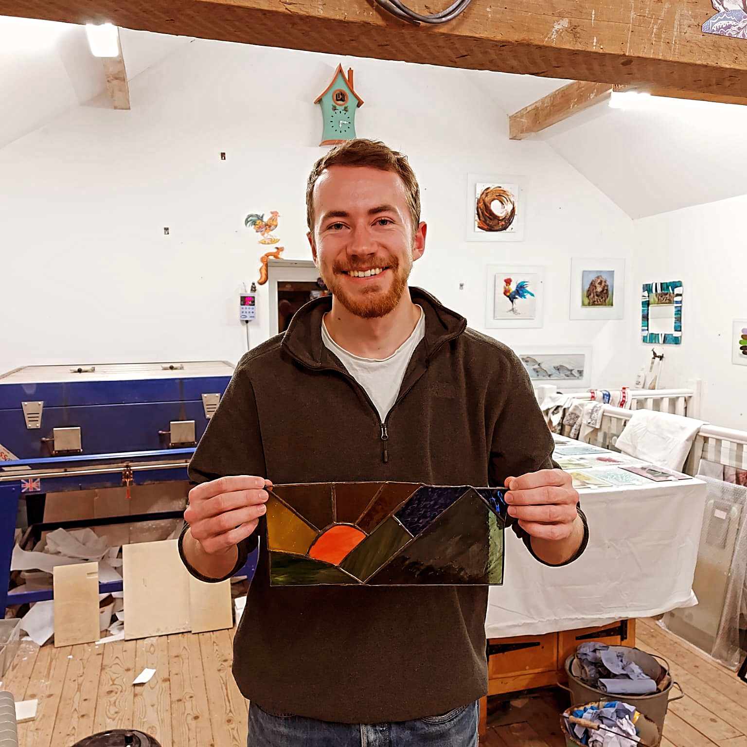 Kat’s teaching style combines technical precision with creative encouragement. Her work appears in architectural projects across the UK, but she finds equal satisfaction in helping a nervous beginner create their first stained glass panel. Her passion for traditional techniques and patient teaching approach make even the most complex projects feel achievable.