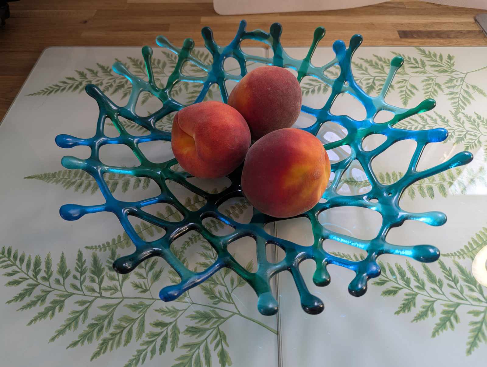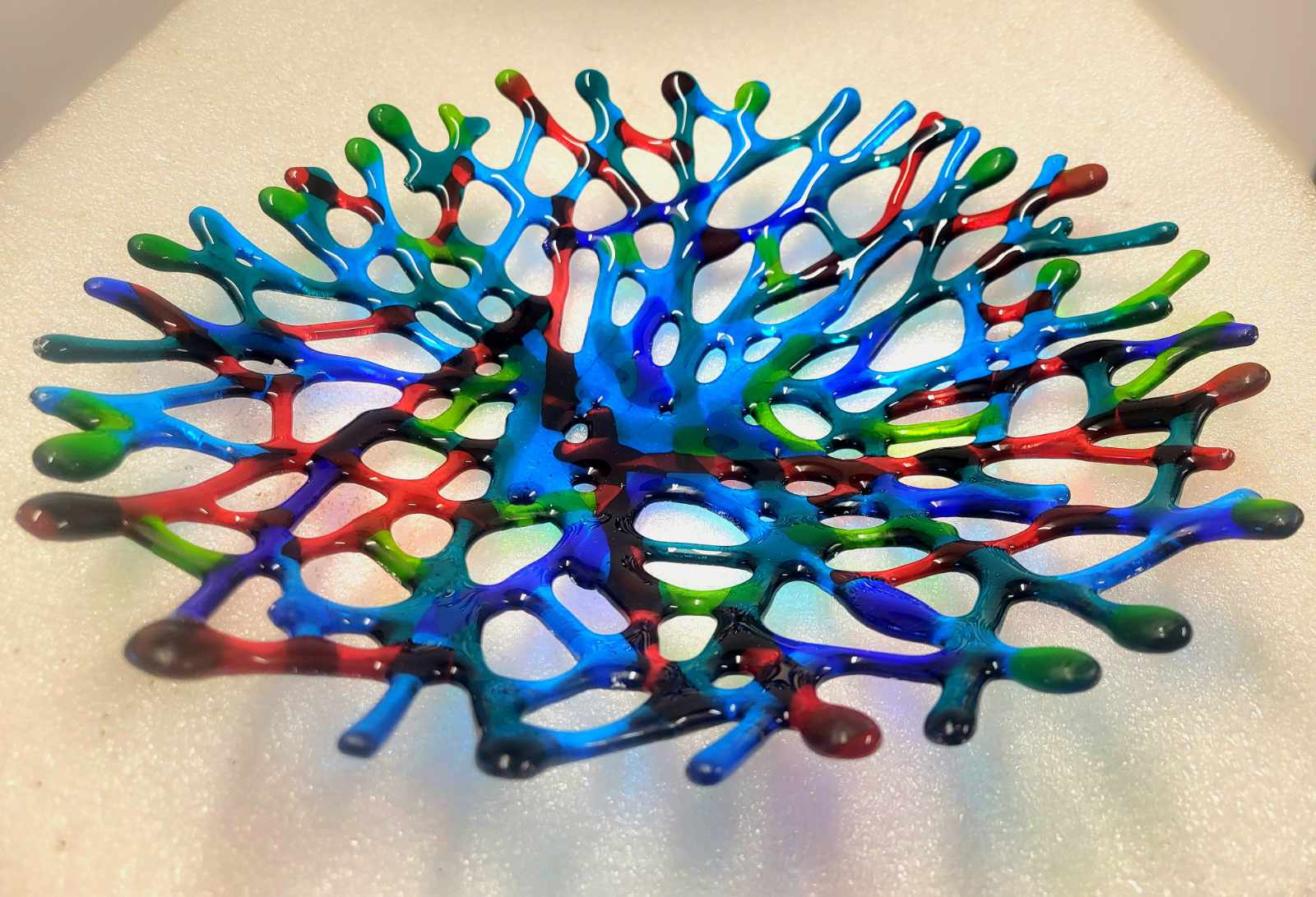 You’ll create your own coral bowl (approximately 8-10″ diameter) in colours of your choice. The technique creates dramatic, three-dimensional effects with an organic, nature-inspired look. Each bowl is completely unique depending on how you arrange the glass and which colours you select.